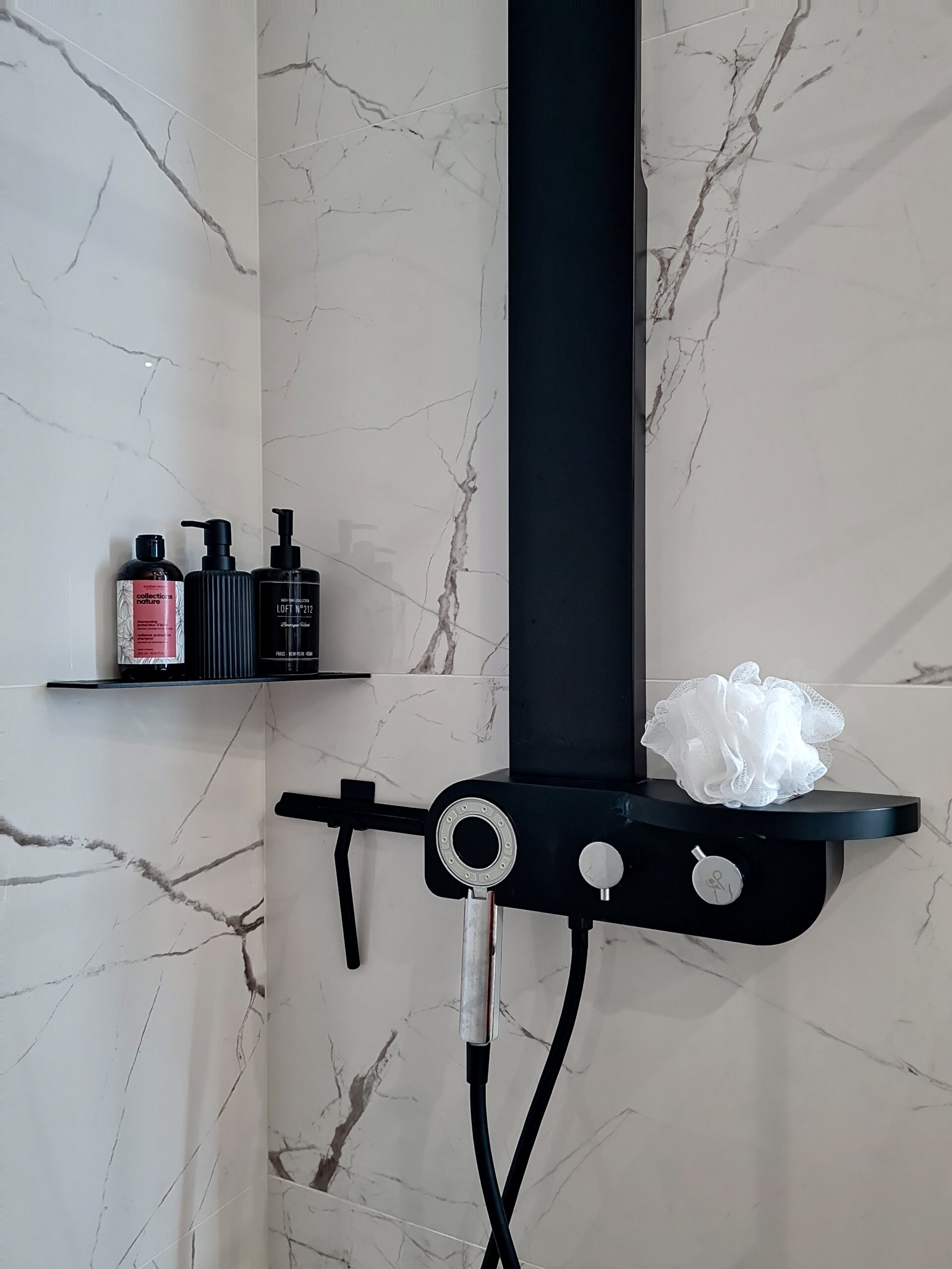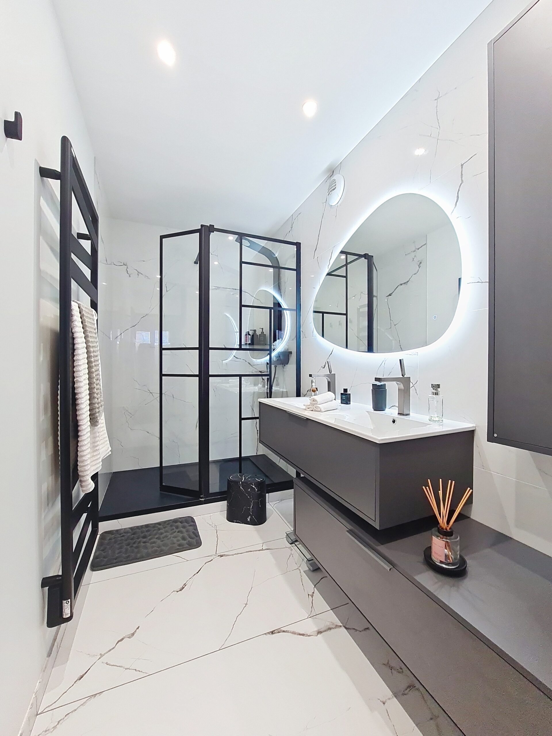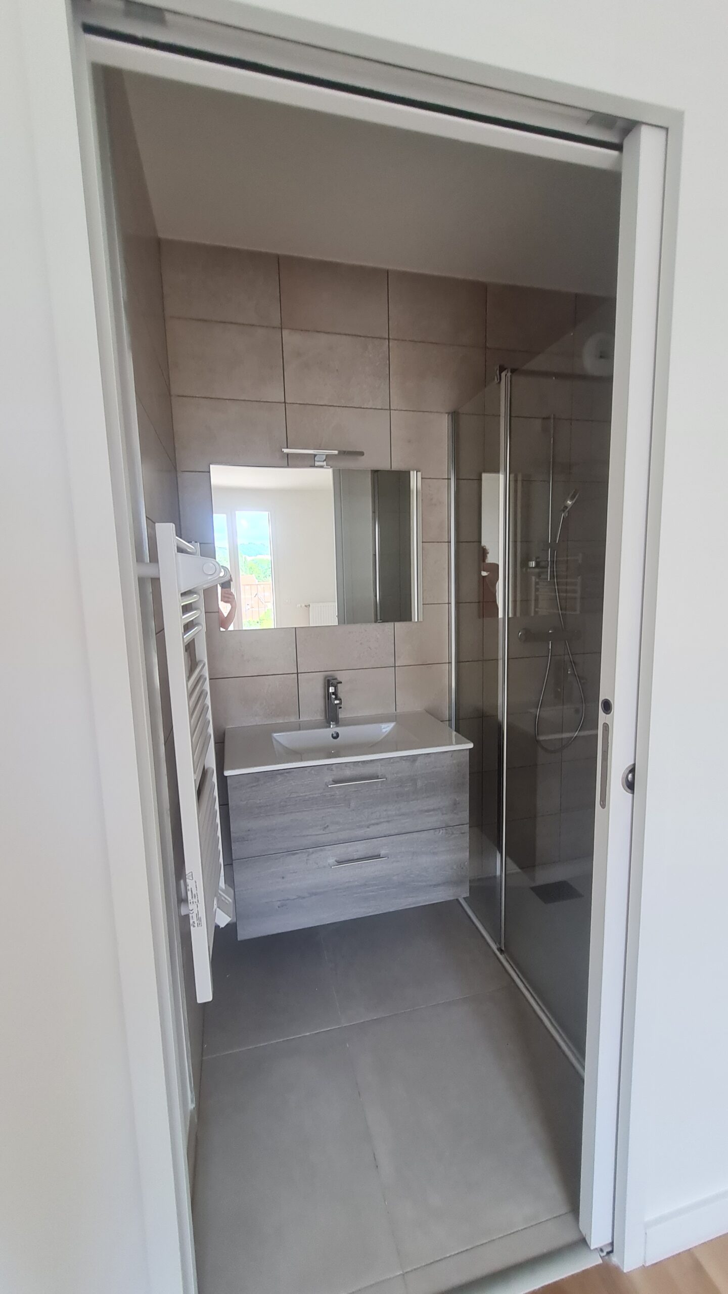 Spacieuse et lumineuse salle d’eau de 6m2 pour cette suite parentale entièrement repensée. Exit l’ancienne salle d’eau d’appoint de 2.5m2 !