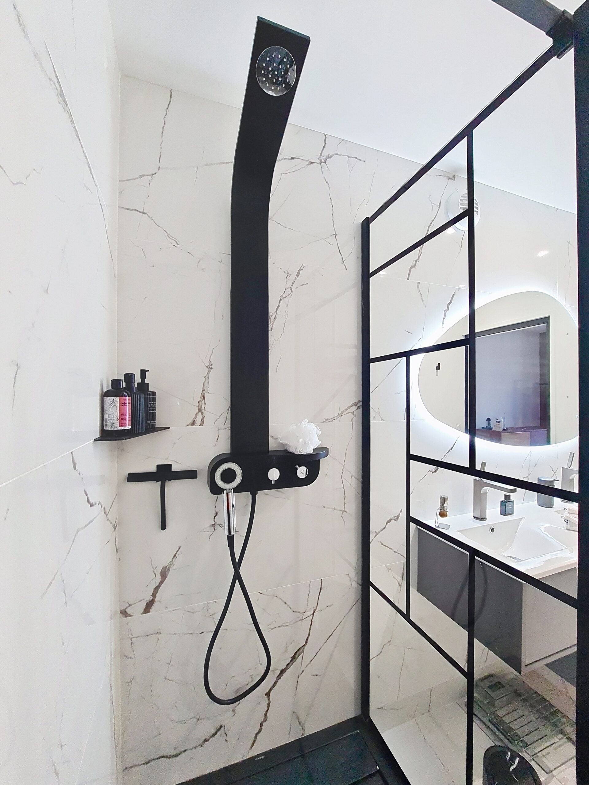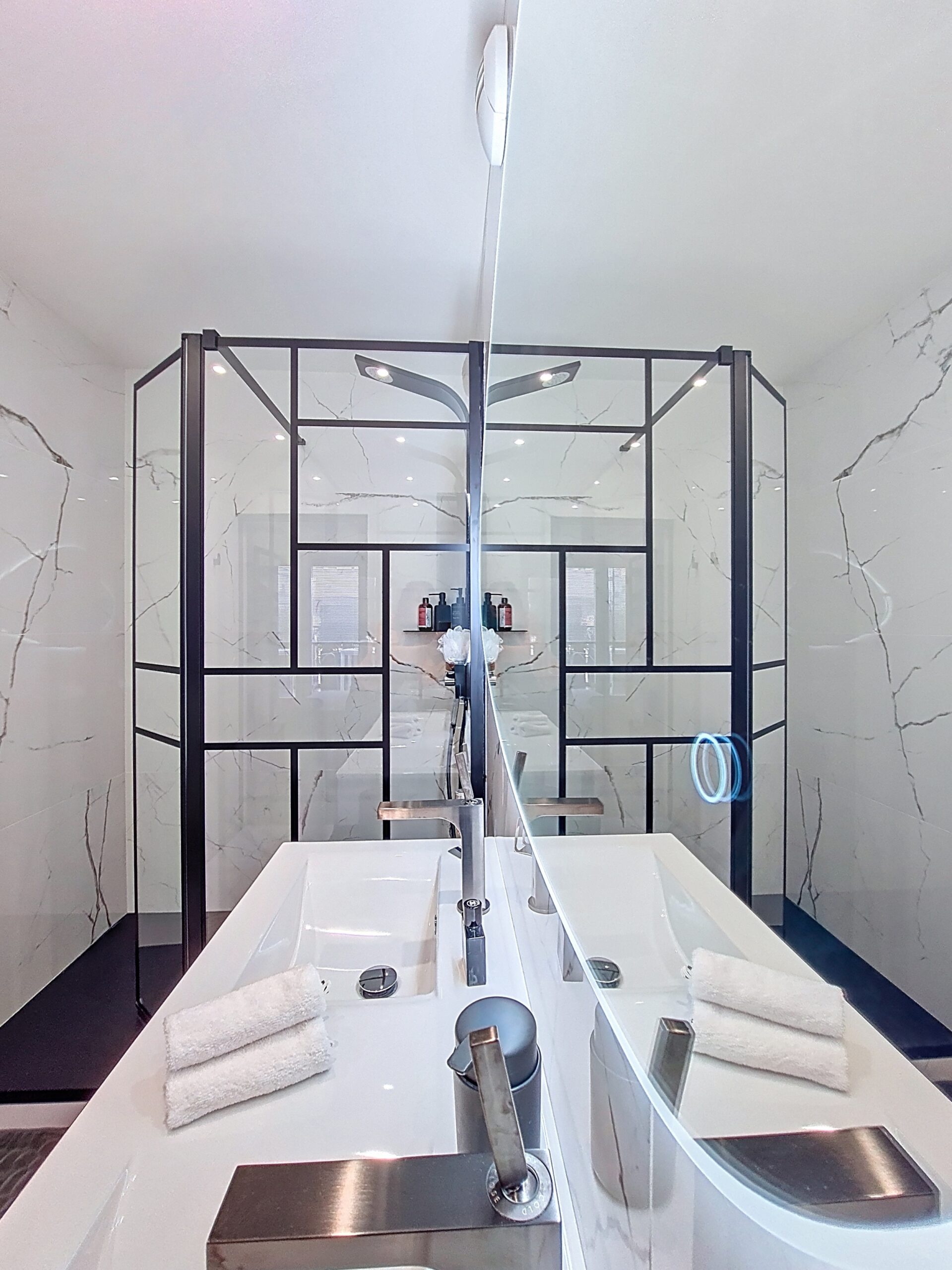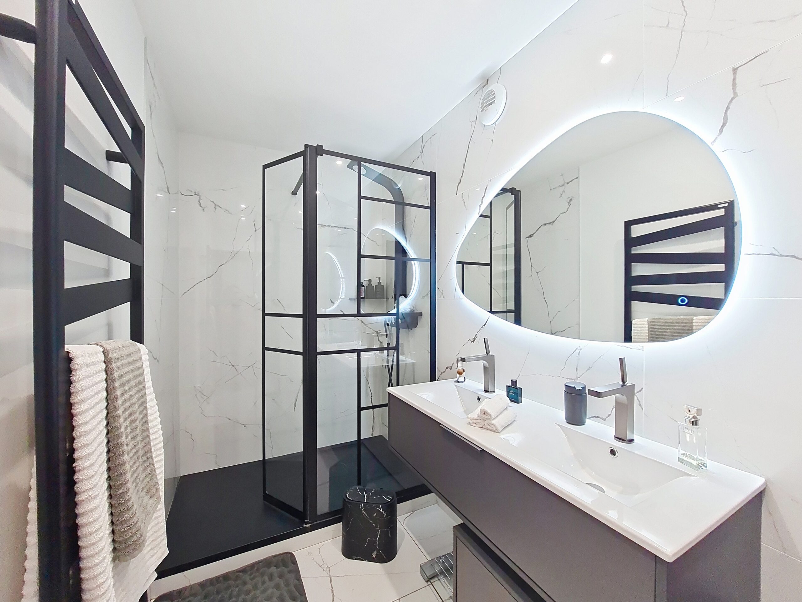 Spacieuse et lumineuse salle d’eau de 6m2 pour cette suite parentale entièrement repensée. Exit l’ancienne salle d’eau d’appoint de 2.5m2 !